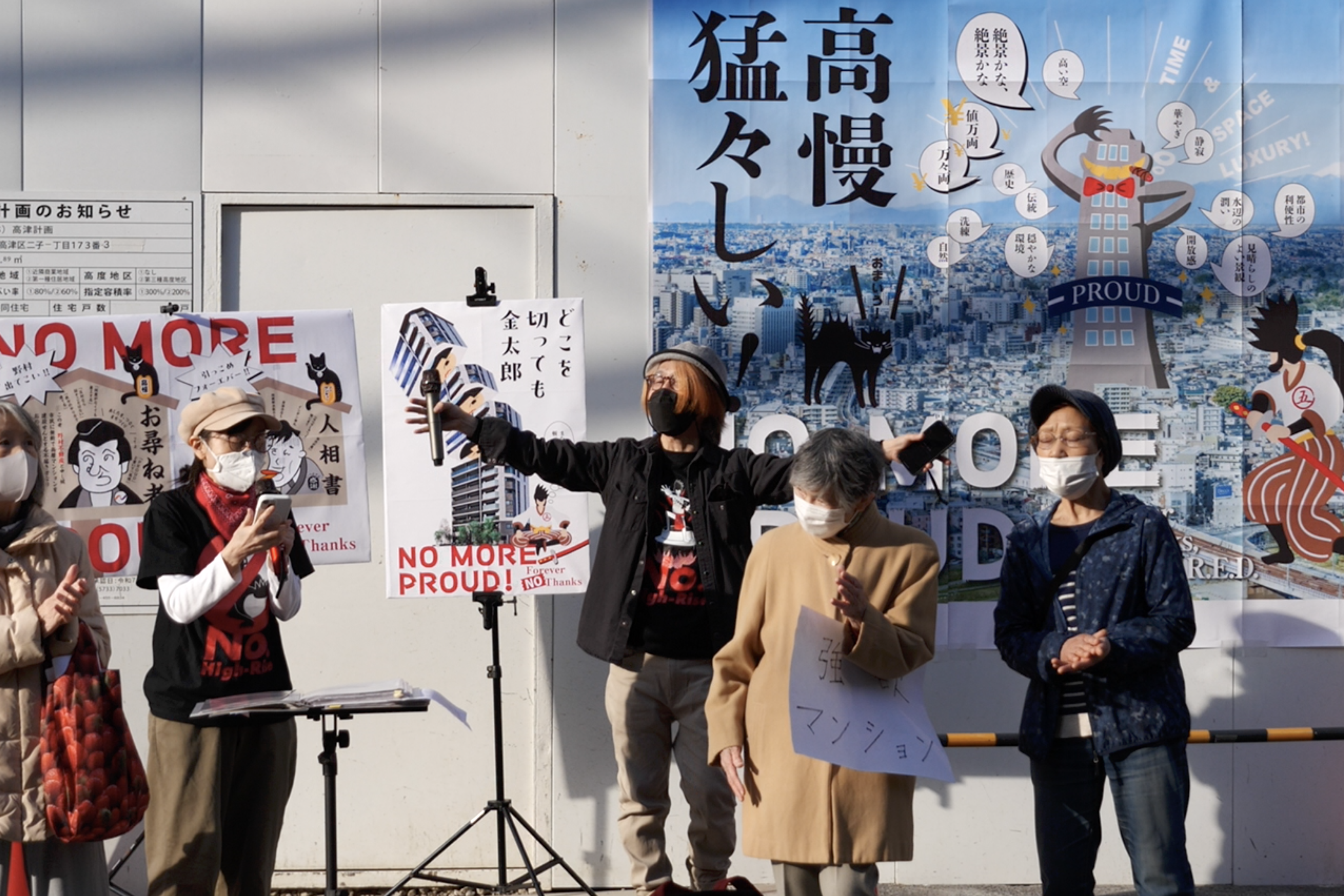 工事強行から1年、対話を拒否し続ける野村不動産とフォーエバー・サンクスに対して抗議のスタンディング・デモを決行しました。