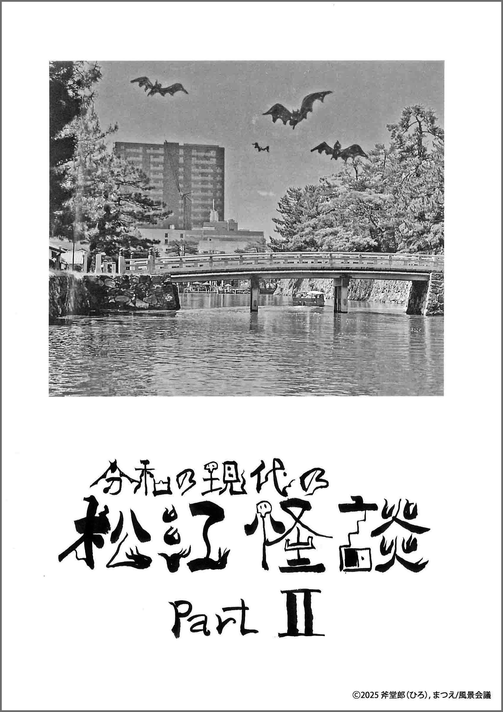 まつえ/風景会議発行の「令和の現代の松江怪談」Part1とPart2(絵と文:斧堂郎=ひろ)。松江が置かれた今の状況を辛辣なユーモアで風刺する漫画集。※画像をクリックで全編PDFをダウンロード