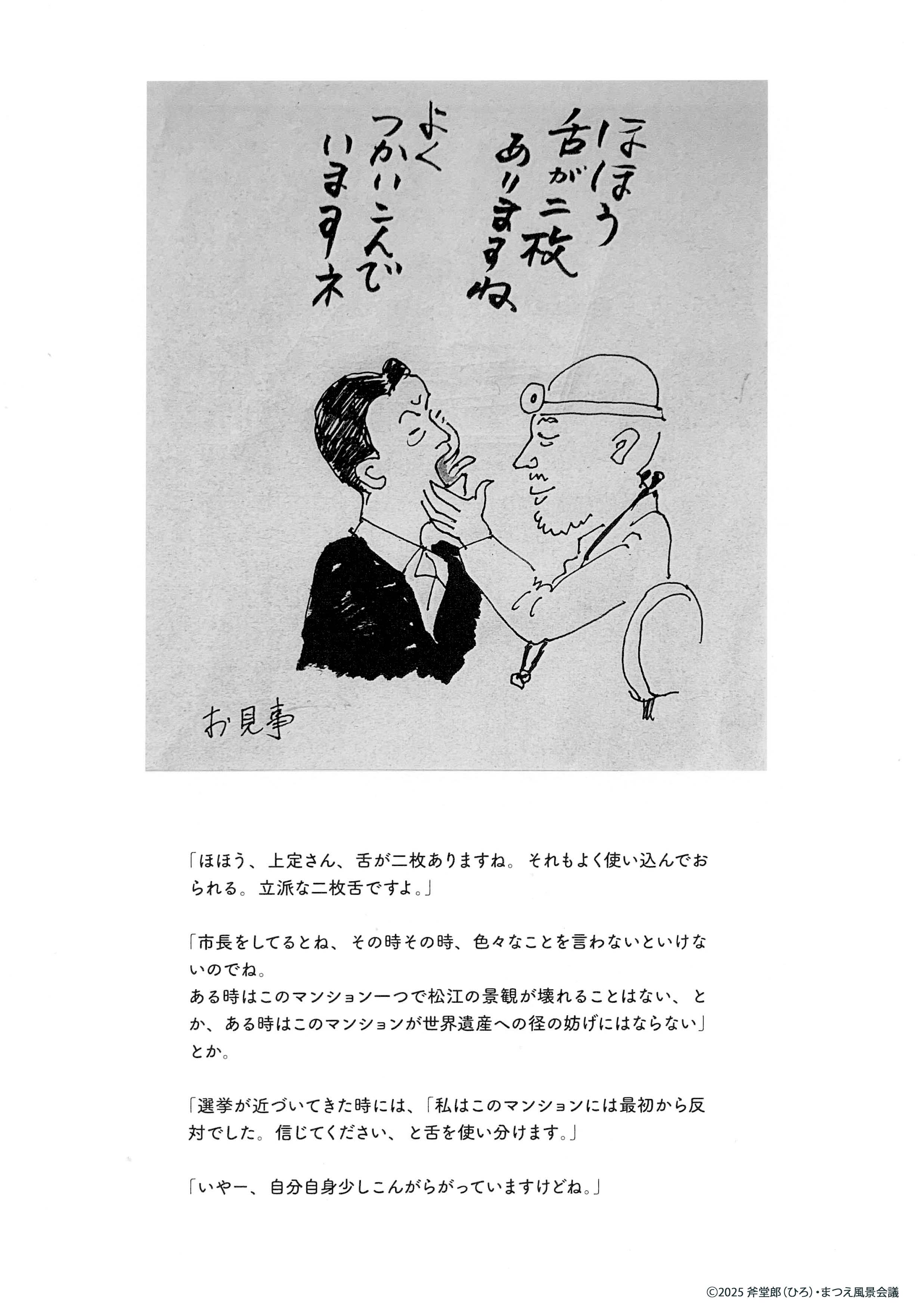 NHK連続朝ドラ「ばけばけ」が好調のようです。その人気を受けて、松江を始め全国の小泉八雲(ラフカディオ・ヘルン)ゆかりの地が今、観光客で溢れているそうです。しかしその裏側で、ヘルンさんたちが最も愛した町・松江の歴史的町並みが、高層マンションの連立によって崩壊の危機を迎えています。