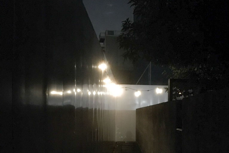 今週は「外構工事(騒音・振動作業)」。騒音/振動計と側溝通路にライトが設置された